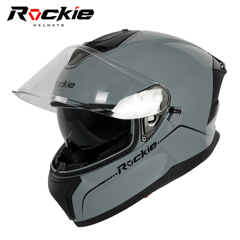 Rockie helmet R4 (Plain) Motocycle Dual Visor Full Face Helmet(Grey)