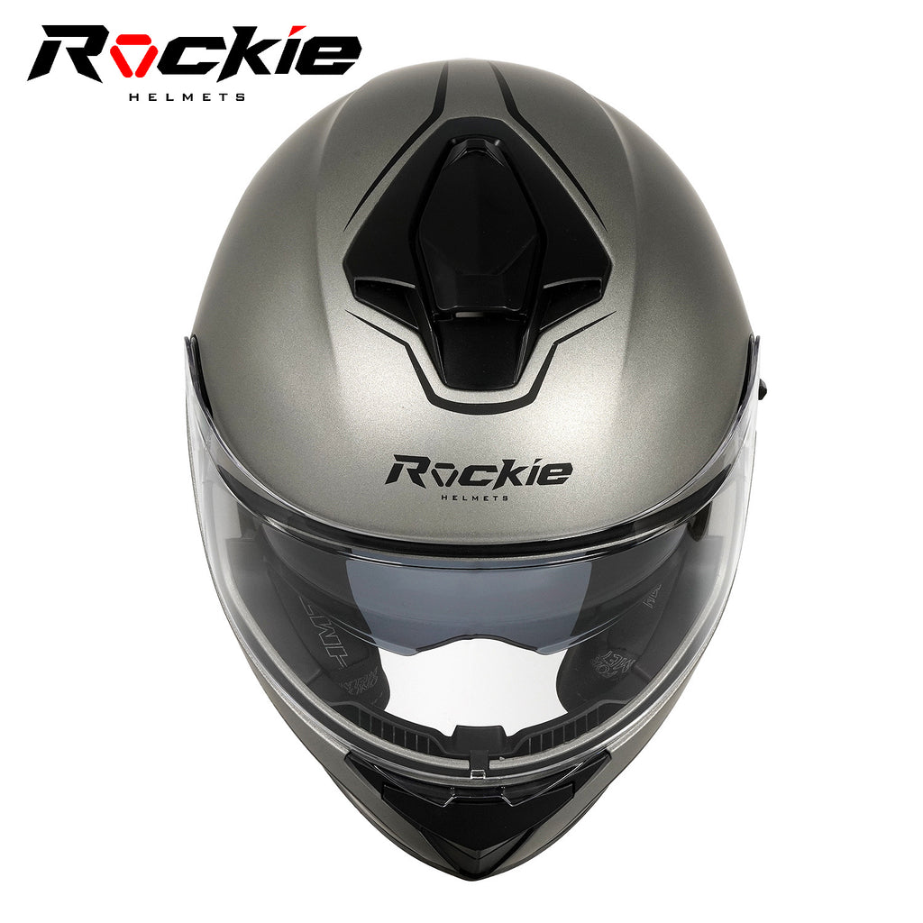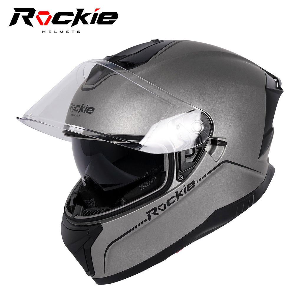 Rockie helmet R4 (Plain) Motocycle Dual Visor Full Face Helmet(Matt Grey)