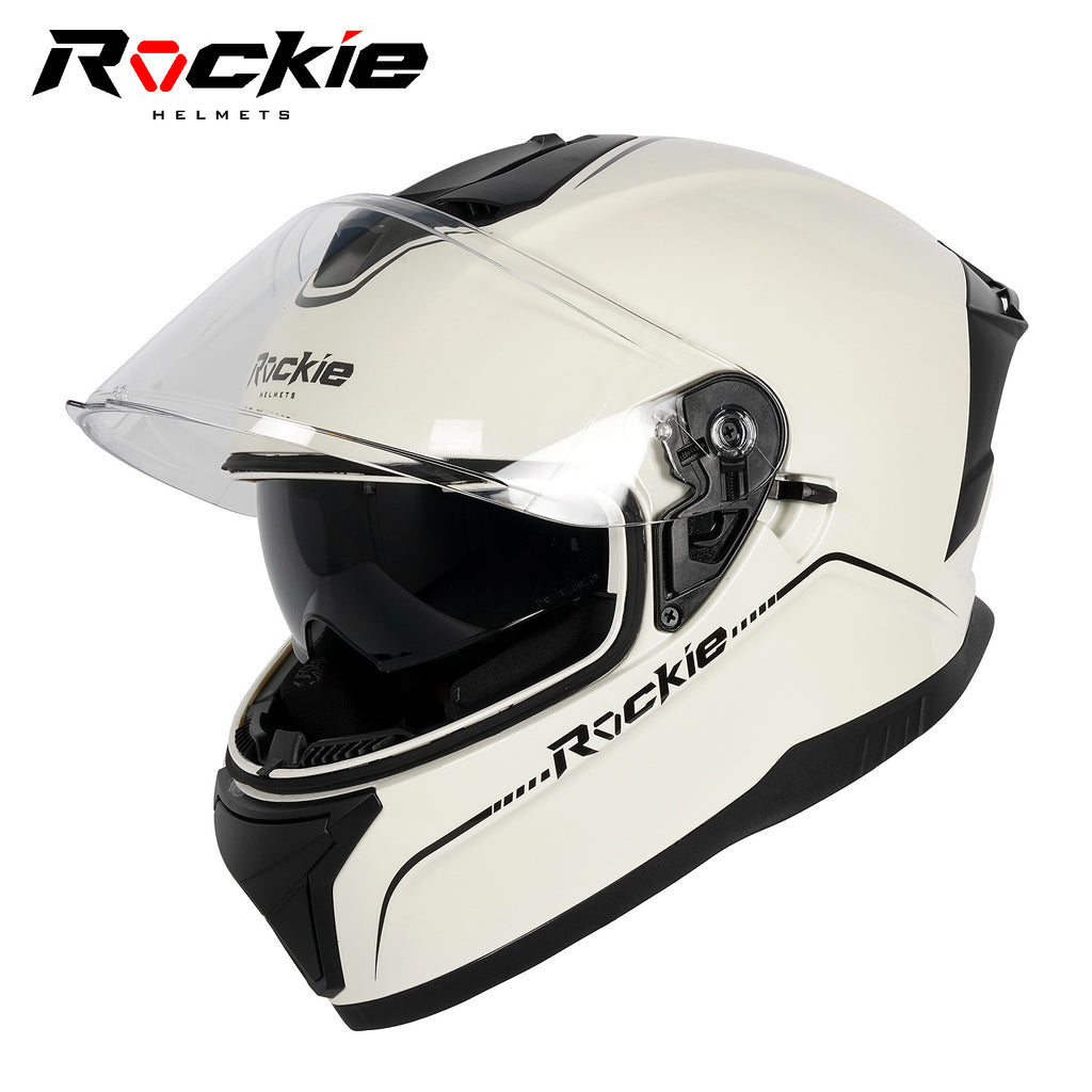 Rockie helmet R4 (Plain) Motocycle Dual Visor Full Face Helmet(White)