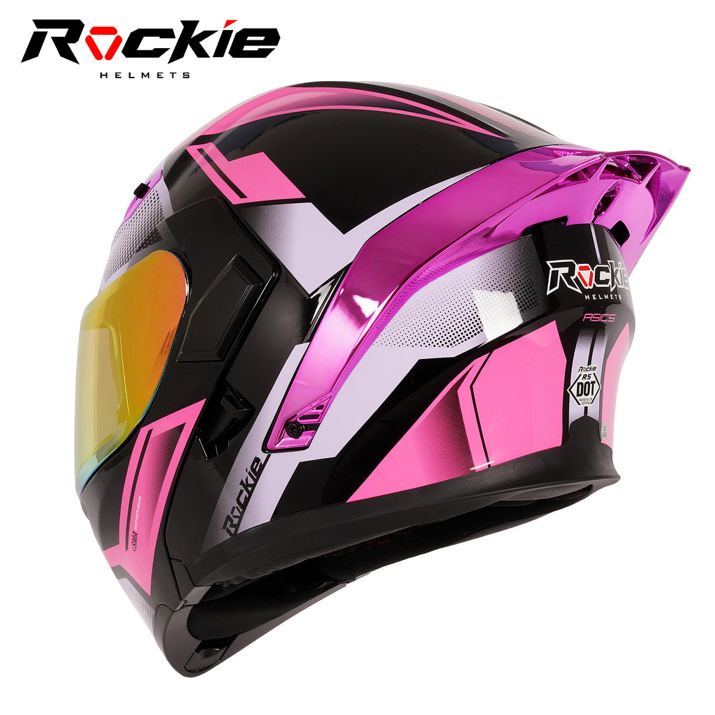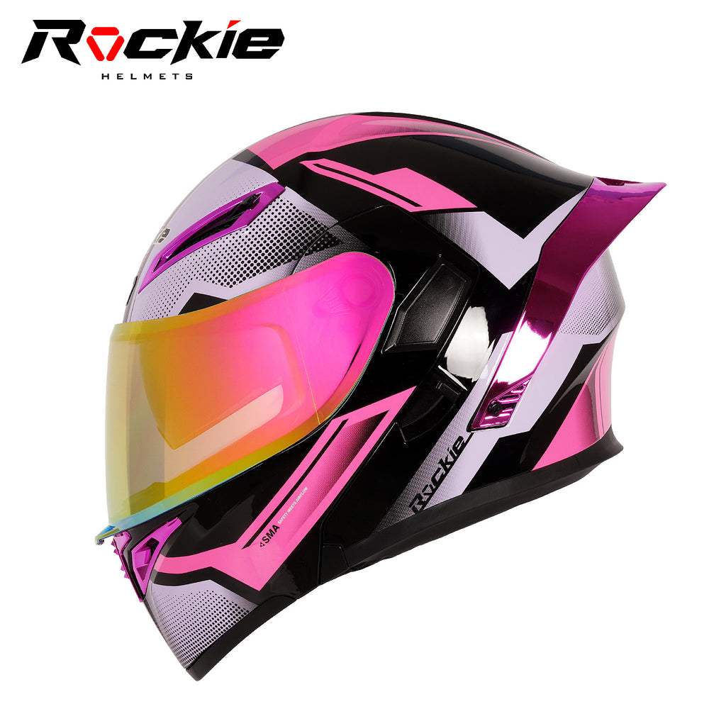 Rockie helmet R5 (Asics) Motocycle Dual Visor Flip up helmets Modular Helmet(Black Pink)