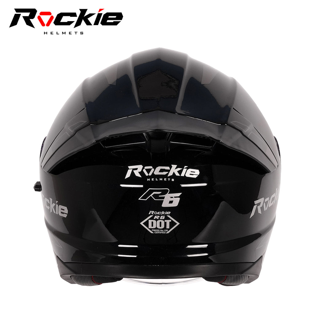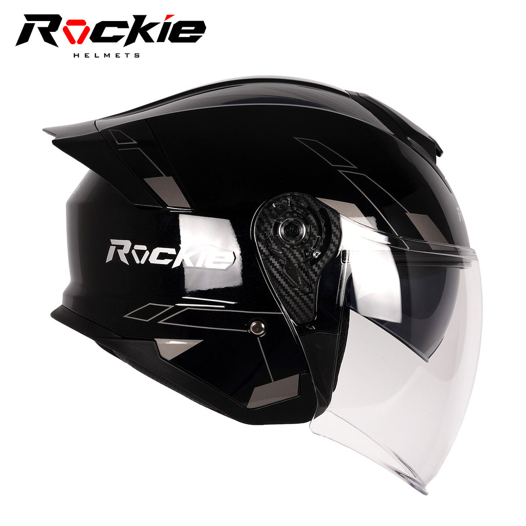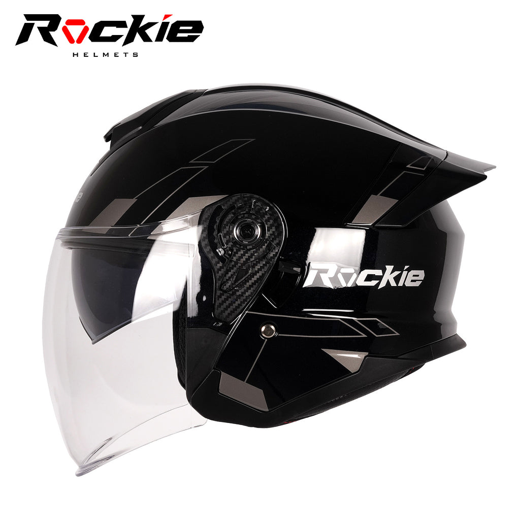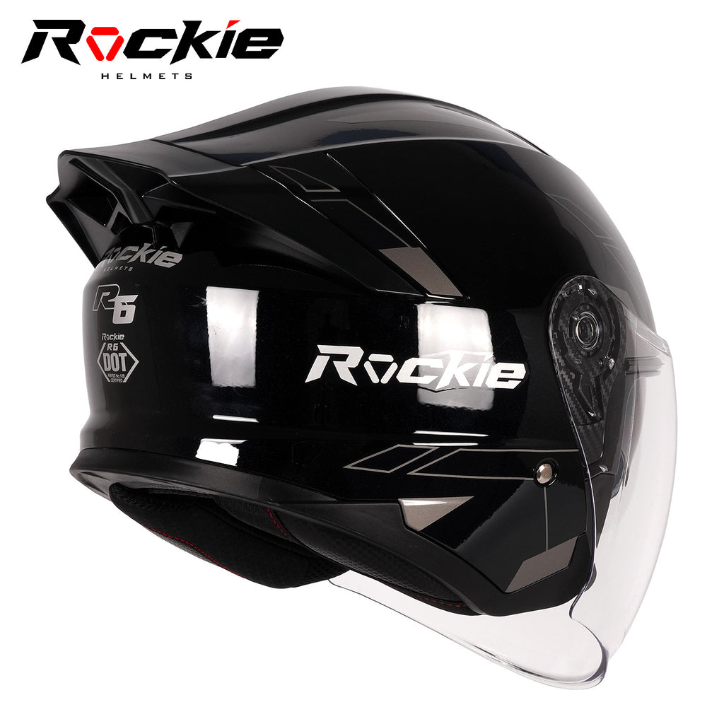 Rockie helmet R6 Motocycle Dual Visor Open Face Helmet(Black)