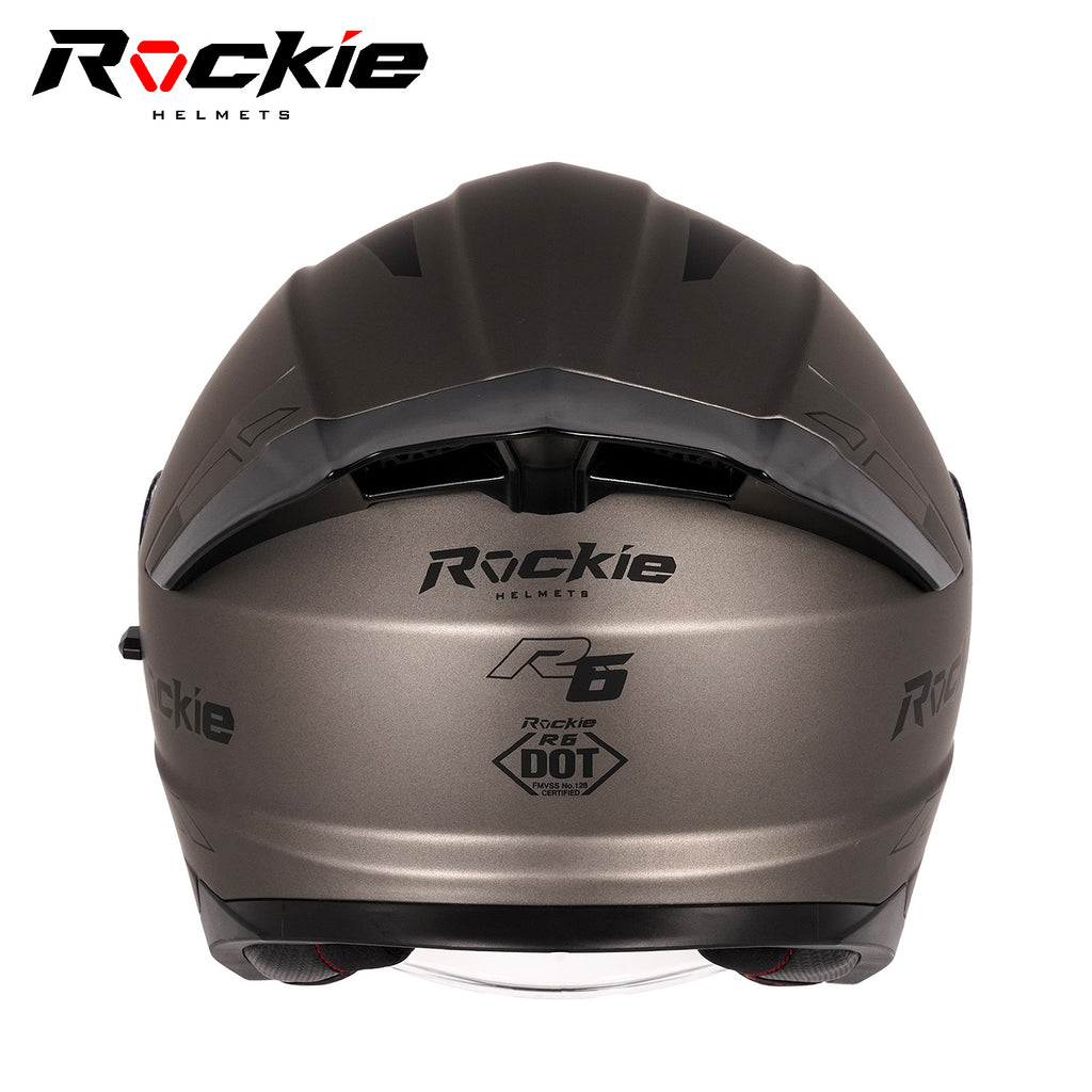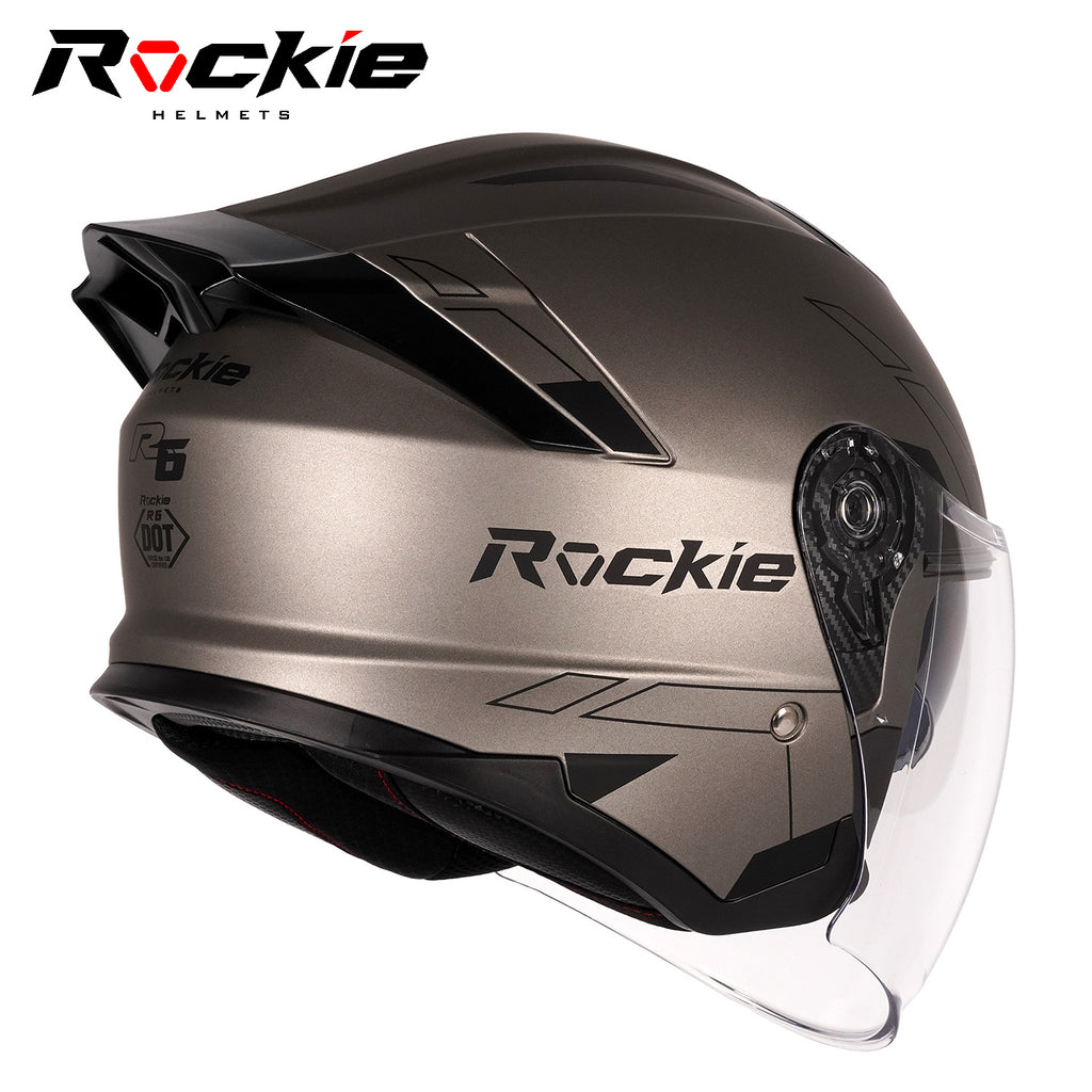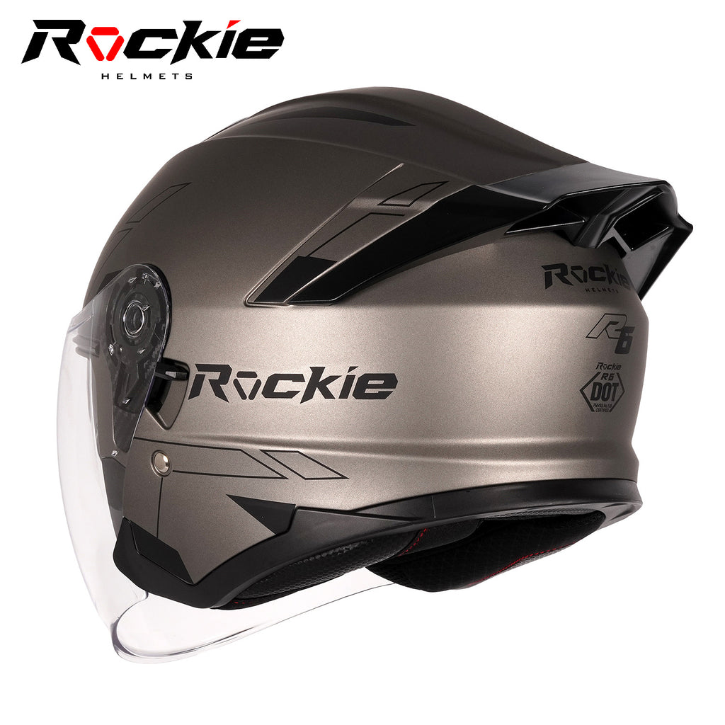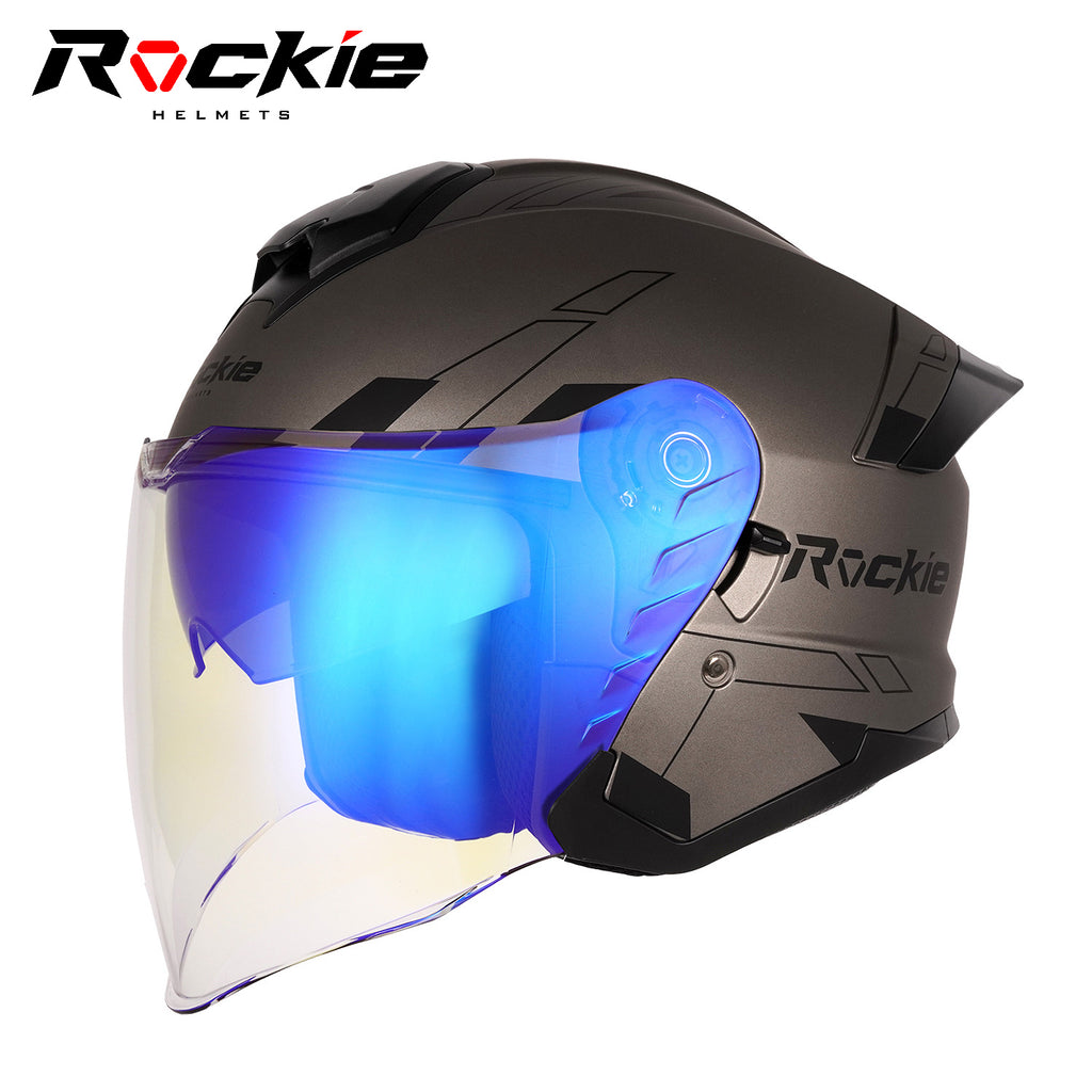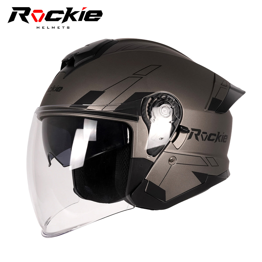 Rockie helmet R6 Motocycle Dual Visor Open Face Helmet(Grey)