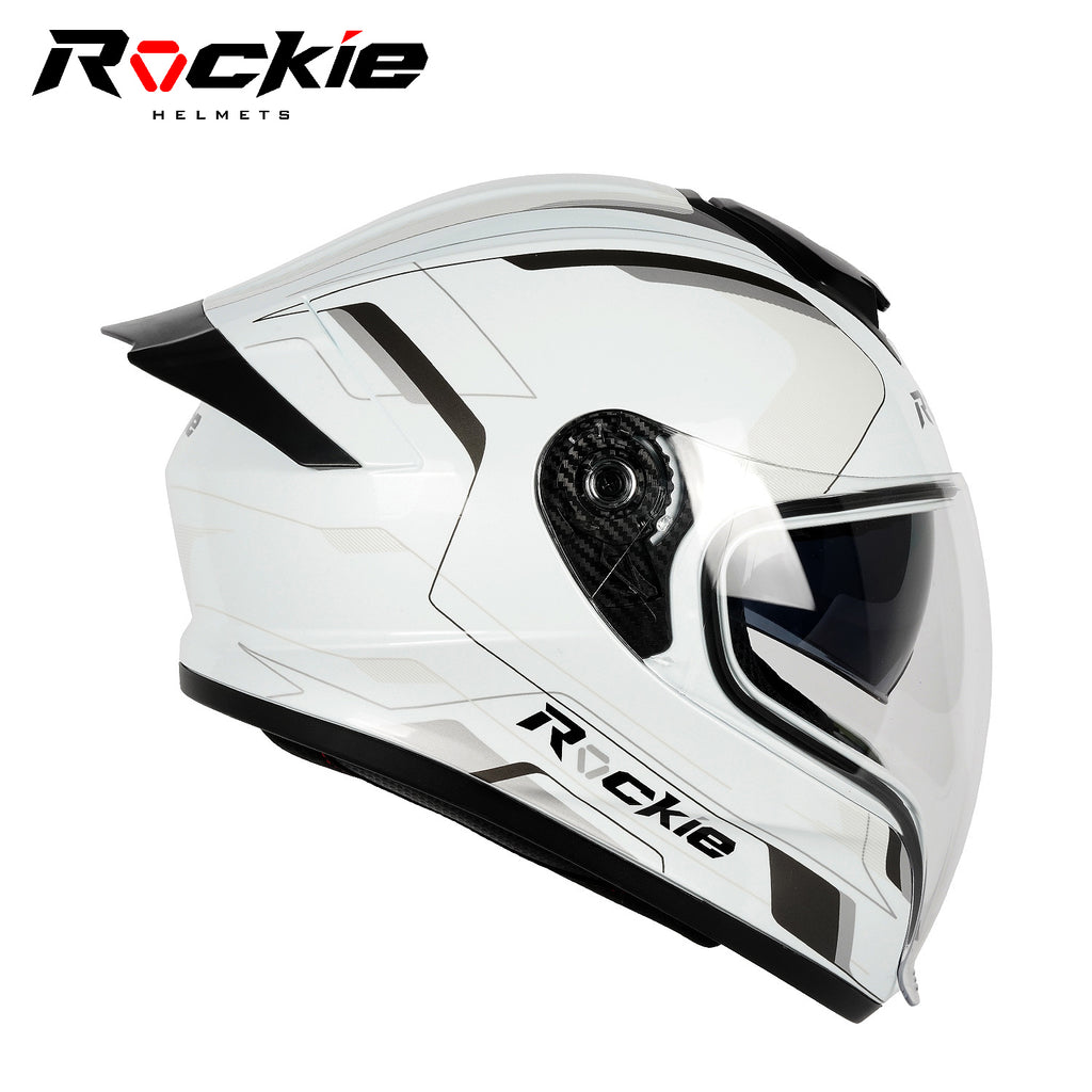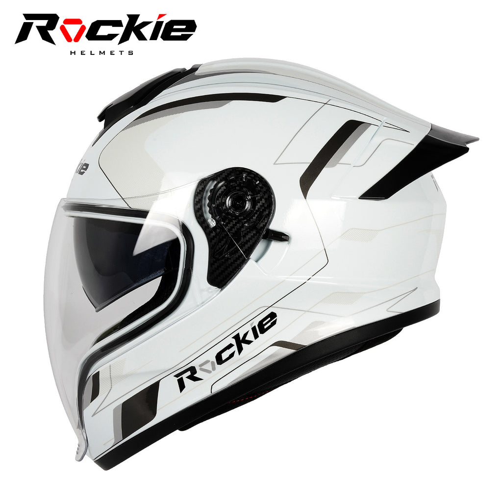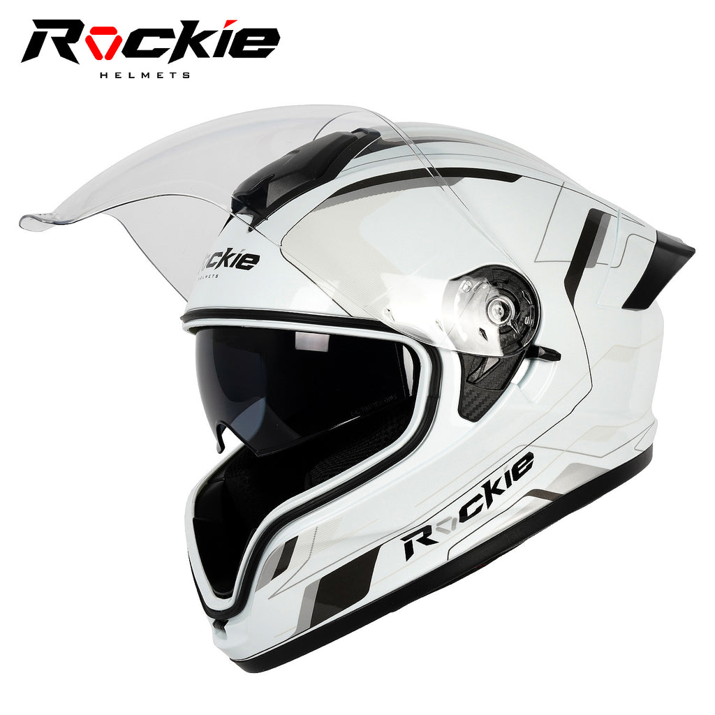 Rockie helmet R7(Navigator) Motocycle Dual Visor Full Face Helmet(White Grey)